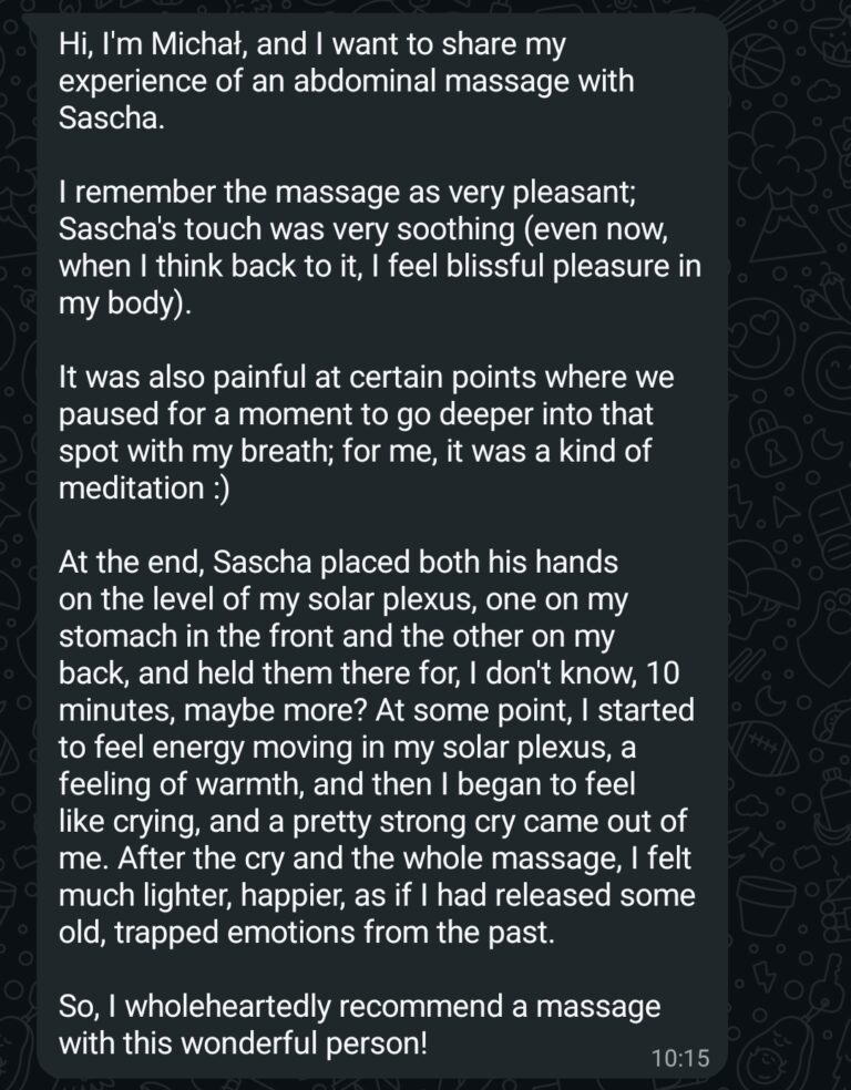 Every two weeks, the massage lover receives a new email with a link to my videos—offering up to one hour of knowledge and practical guidance to work with, until the next email arrives